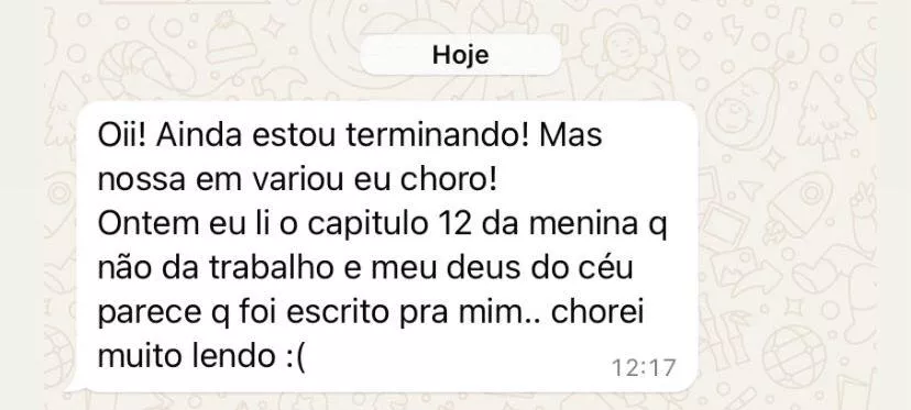 Não! O livro possui, contando com capa, sumário e títulos, cerca de 80 páginas. Mas está formatado com letras grandes e imagens, de modo que a leitura se torne mais confortável. A maior parte das mulheres o lê em um ou dois dias.